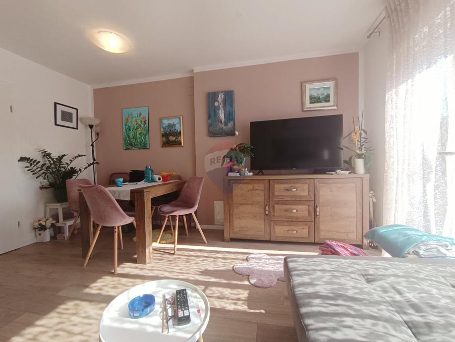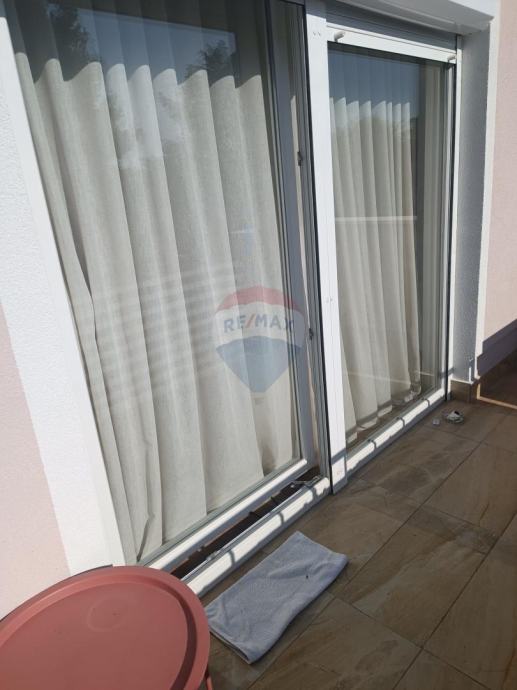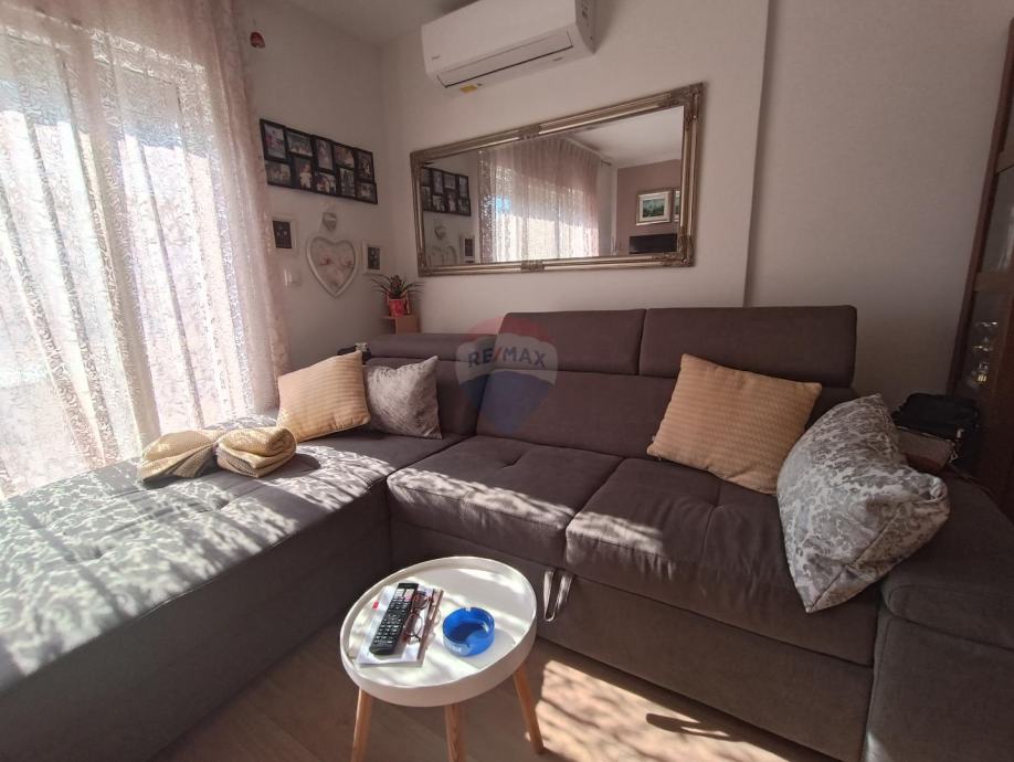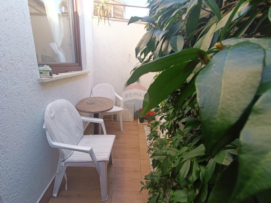 U prizemlju je studio apartman s kuhinjom i blagovaonicom, kupaonicom i ostavom te spavaćim i dnevnim dijelom s izlazom na manju terasu.