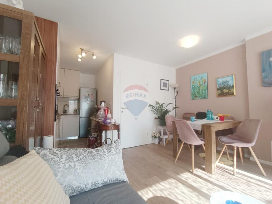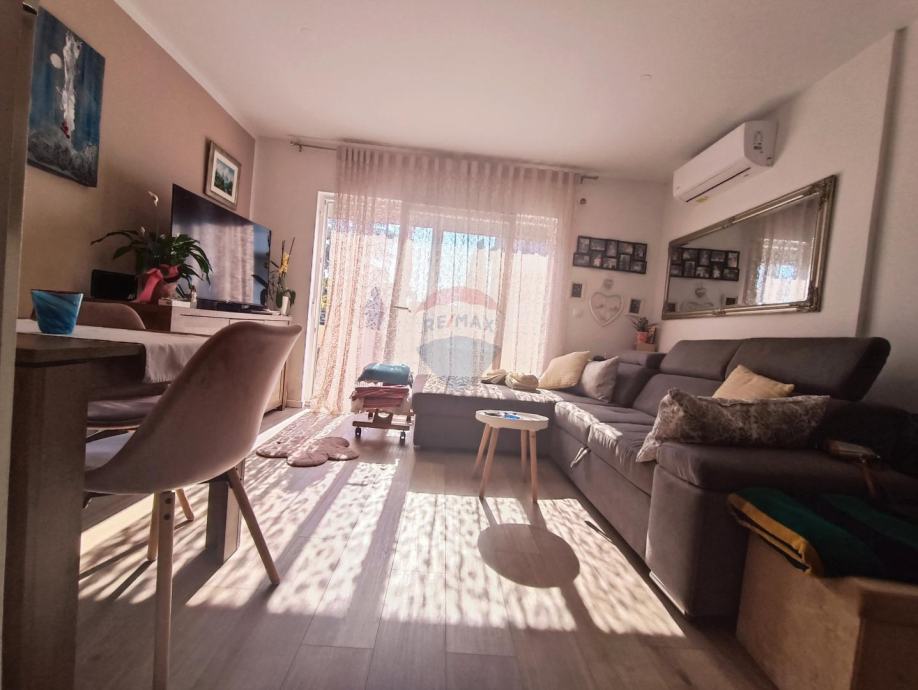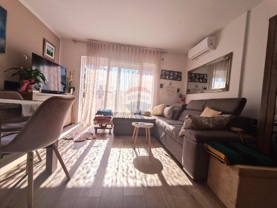 Prva etaža se sastoji od kupaonice, dnevnog boravka s kuhinjom i blagovaonicom gdje se izlazi na terasu južno orijentiranu te stoga osunčanu tokom cijelog dana. Na drugoj etaži stana su se smjestile dvije spavaće sobe te jedna kupaonica. Jedna od spavaća soba ima vlastitu nenatkrivenu terasu.
