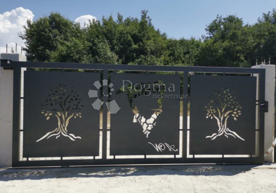 Na prostranoj parceli od 4798 m2, koja je lijepog oblika, očekuje vas pravi raj prirode. Oko cijele parcele nalazi se ograđeni zid s armiranim temeljem, a ulaz je olakšan kliznim portunom, širine 5 m, te malim vratima sa strane. Na parceli se nalazi desetak maslina, jabuka i krušaka, pružajući vam mogućnost uživanja u svježem voću s vašeg vlastitog imanja.