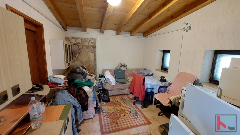 U mirnom, idiličnom okruženju u blizini atraktivnog Rovinja se nalazi ova legalizirana kuća od 68m2 smještena na poljoprivrednom zemljištu od 8201 m2 od čega je 4403 m2 u vlasništvu dok je 3798 m2 dobiveno na dugogodišnje korištenje od strane Republike Hrvatske te je udaljena 1500 m od glavne prometne ceste, a oko 2000 m od centra Rovinja.