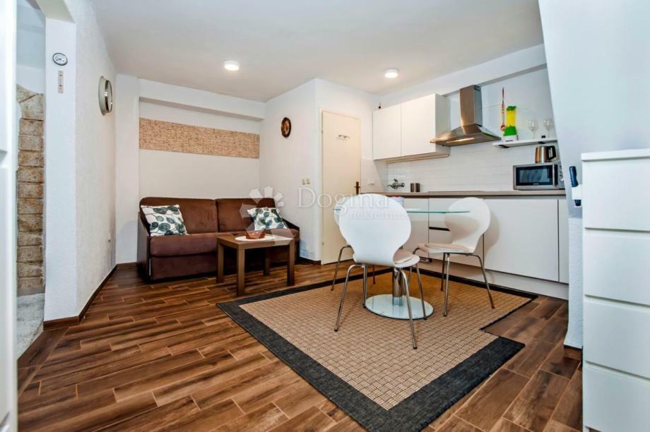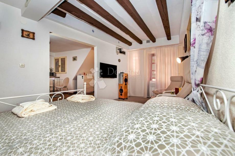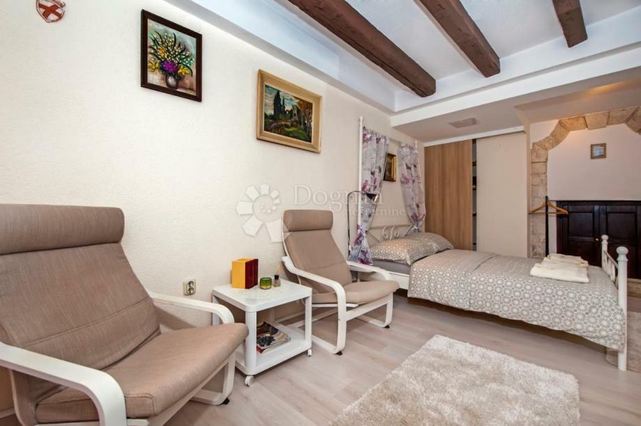 Stan je smješten u prizemlju starogradske kuće s ulazom sa široke, kamenom popločane ulice.