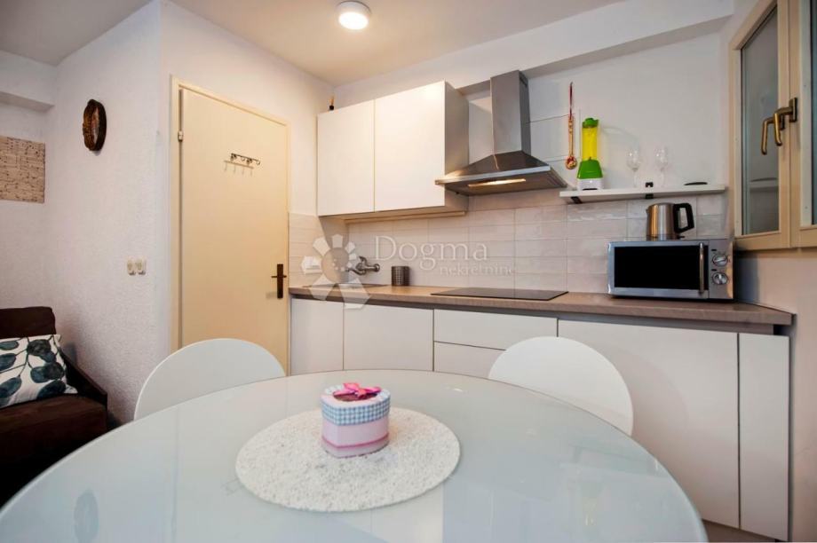 Raspored prostorija je veoma lijep i praktičan s dnevnim boravkom, kuhinjom i blagovaonicom u prvom planu i prostranom spavaćom sobom i kupaonicom u stražnjem dijelu stana.