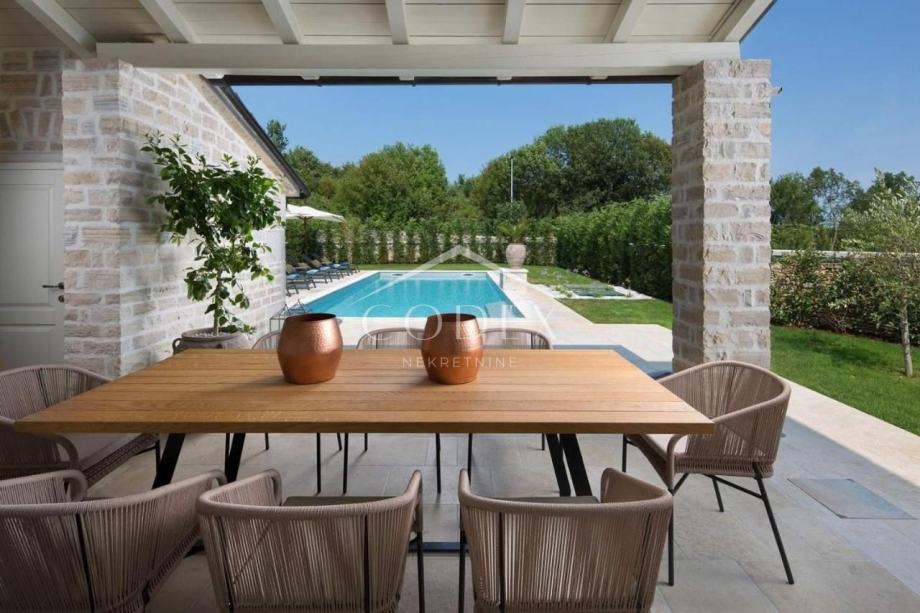 Prodaje se ekskluzivna ladanjska villa s bazenom na zelenim obroncima Istre. Ovu prekrasnu villu krasi skupocjeni interijer, veliki bazen, privatni kompleks sportskih terena i povlaštena lokacije u središtu Istre. Ljepotica vintage šarma, savršenih dimenzija za velika obiteljska okupljanja, proteže se na 297 m2 sa okućnicom od 824 m2.