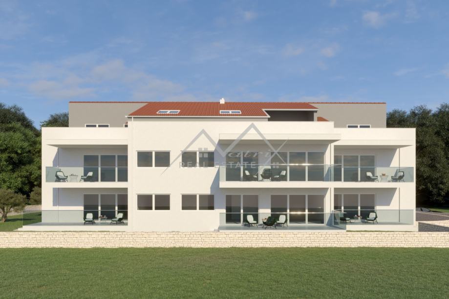 Stan je opremljen aluminijskom stolarijom s električnim roletama i mrežicama protiv insekata, protuprovalnim ulaznim vratima za dodatnu sigurnost te video parlafonom. Elegantne staklene balkonske ograde naglašavaju suvremeni stil zgrade.