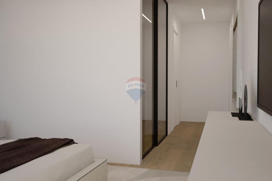 tri prostrane spavaće sobe svaka sa svojom kupaonicom,od toga 2 spavaće sobe sa prostorijom-garderobom,sveukupne korisne površine 189 m2.