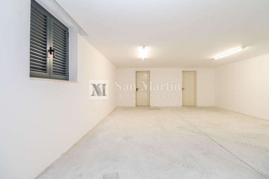 Nekretnina se sastoji od stambenog prostora sa gotovo 122 m2 , vlastitog vrta s 40 m2 , garažnog parkirnog mjesta, vlastite kotlovnice, te još jednog vanjskog parkinga ispred samog stana.