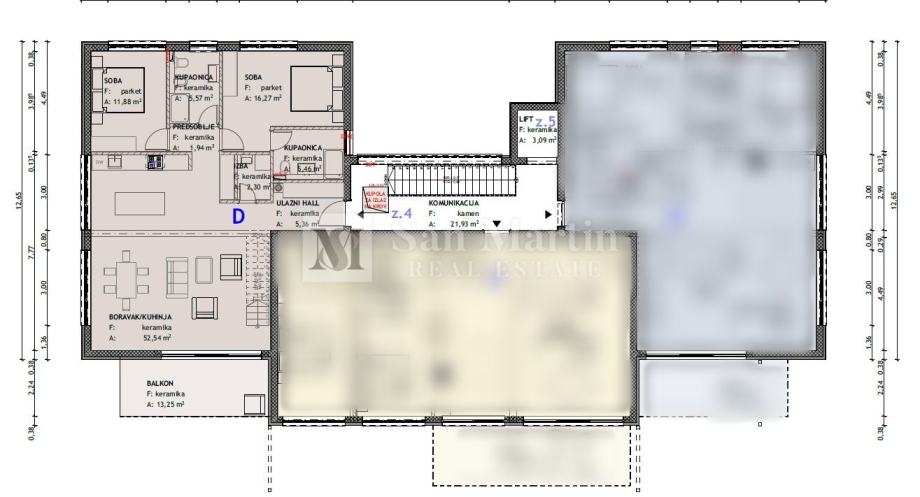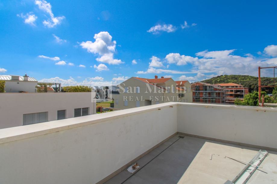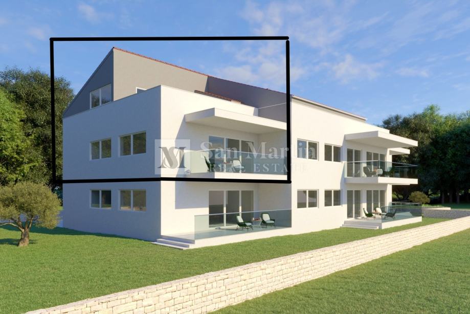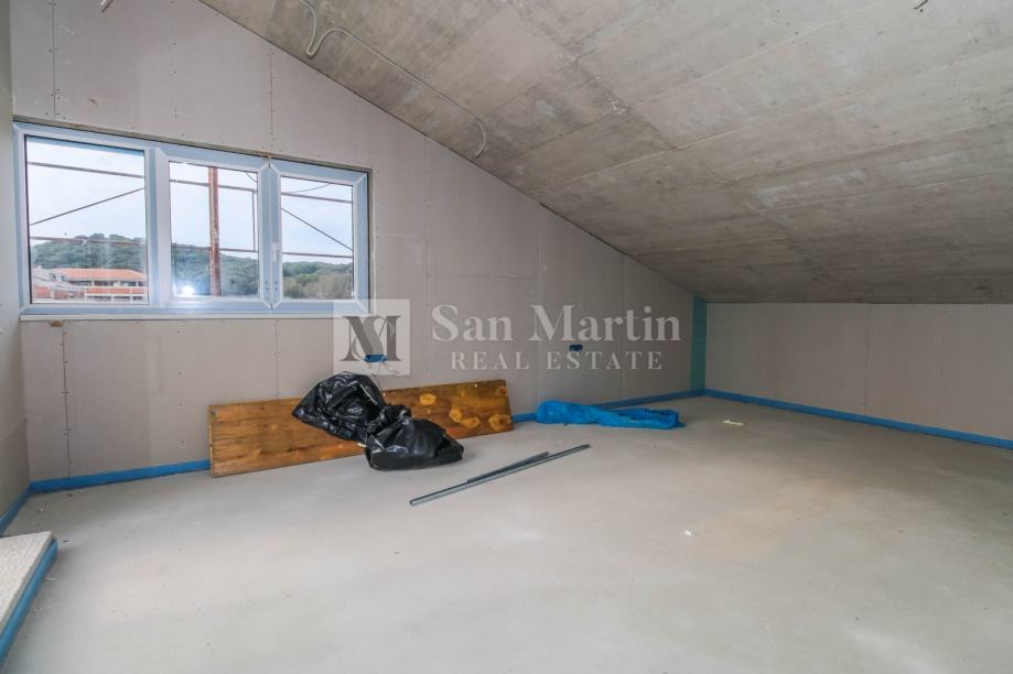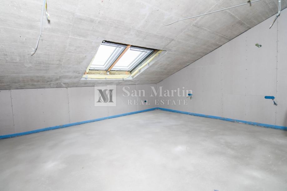 Ovaj komforni stan prostire se kroz dvije etaže, te broji ukupnu kvadraturu od 188,83 m2. Zgrada posjeduje podzemnu garažu gdje Vas čekaju dva parkirna mjesta te spremište.Na prvoj etaži stana nailazimo na ulazno predsoblje, ostavu, veliki dnevni dio otvorenog koncepta sa kuhinjom i blagovaonicom, te je tu i natkriveni balkon, dvije spavaće sobe te dvije kupaonice. Unutarnjim stepeništem se ide u visoko potkrovlje koje je smjestilo još dvije spavaće sobe i jednu kupaonicu.