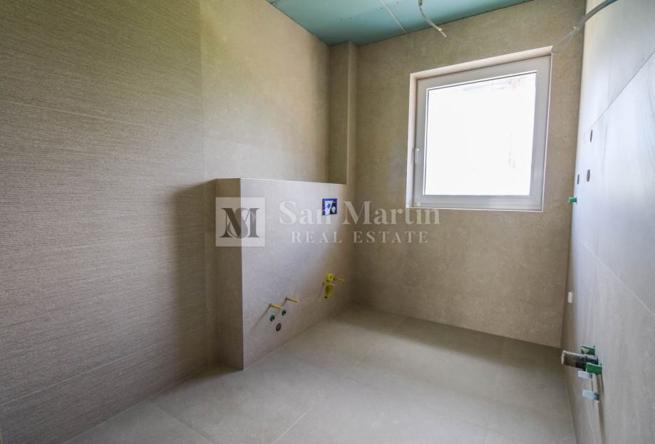 Stan će biti spreman za useljenje s podnim oblogama (keramika i parket), protuprovalnim vratima, videoparlafonom, aluminijskom stolarijom s roletama na struju te klima uređajima, dok je za grijanje sprovedeno podno grijanje na gradski plin.
