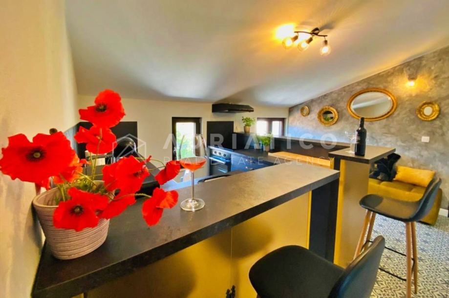 Ovaj novouređeni i moderan trosoban stan površine 75 m2 smješten je na drugom katu kuće.