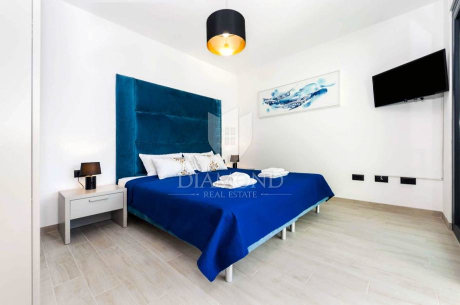 Ukupna stambena površina ove kuće iznosi 110.74m2 te se sastoji od prostranog dnevnog boravka zajedno sa kuhinjom i blagovaonicom, gostinjskog wc-a i dvije spavaće sobe sa vlastitim kupaonicama. U sklopu okućnice nalazi se terasa i bazen sa sunčalištem dok preostali dio okućnice ostavlja dovoljno prostora za uživanje na sviježem zraku i za parking dva automobila.