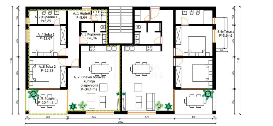 Ovaj funkcionalan raspored pruža idealan sklad između privatnosti i zajedničkih prostora.