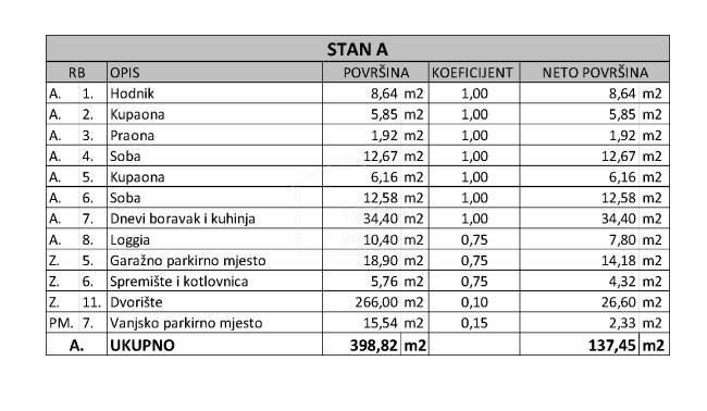 Stanu pripada i jedno spremište, te jedno garažno i jedno vanjsko parkirno mjesto.