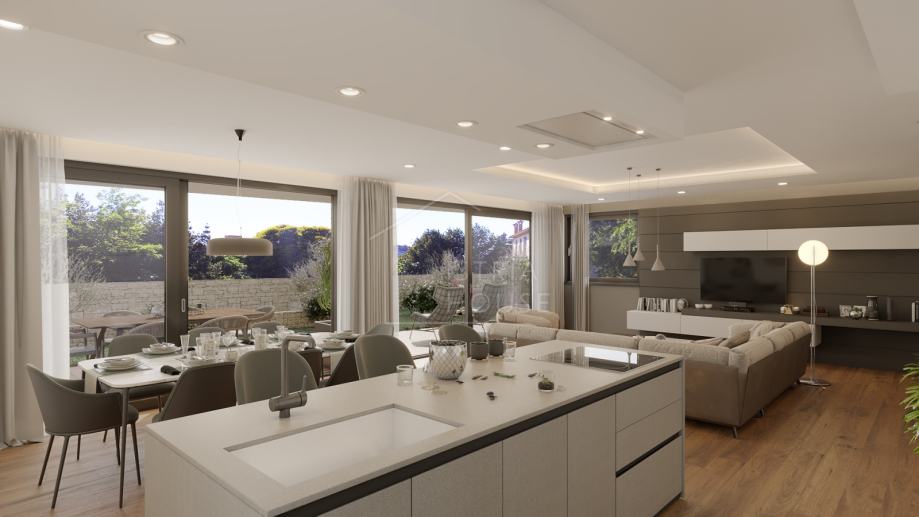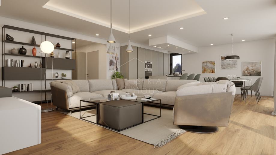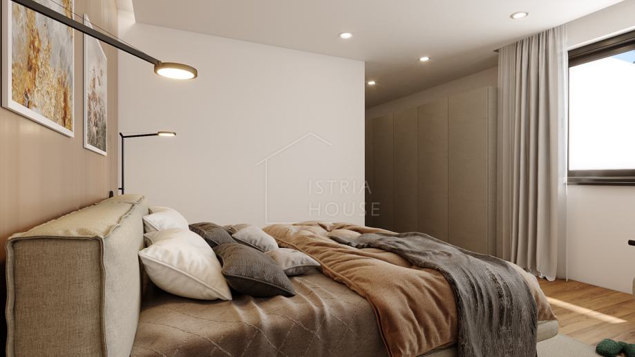 Ovaj stan od 143.73 m2 ima dvije spavaće sobe, svaka sa svojom kupaonicom te svojom garderobom. Blagavaona, dnevni boravak i kuhinja činit će jednu jedinstvenu cjelinu sa koje će se pružati pogled prema vrtu i terasi preko staklene stijene.