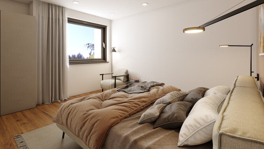 Stan se prodaje nenamješten, osim kupaonica koje će biti kompletno opremljene. S time da budući kupac ima mogućnost,ako mu se namještaj sa slika vizualizacije svidio, da mu se stan kompletno opremi sa identičnim namještajem koji je na slici.