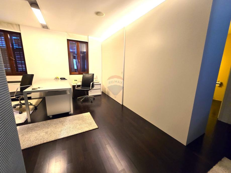 U ovom trenutku nekretnina pretstavlja veliki reprezentativni ured koji se sastoji od više prostorija ,sanitarnih čvorova,spremišta i kuhinje.