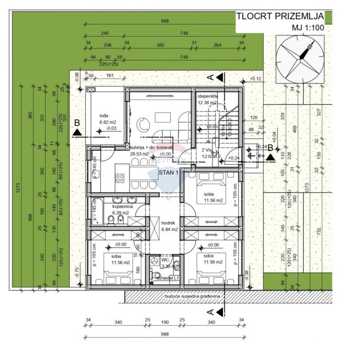 Stan koji broji ukupno 88m2 korisne površine sastoji se od 3 prostrane spavaće sobe,velikog dnevnog boravka s kuhinjom i izlazom na lođu,kupatila još jednog dodatnog sanitarnog čvora,