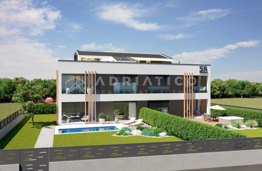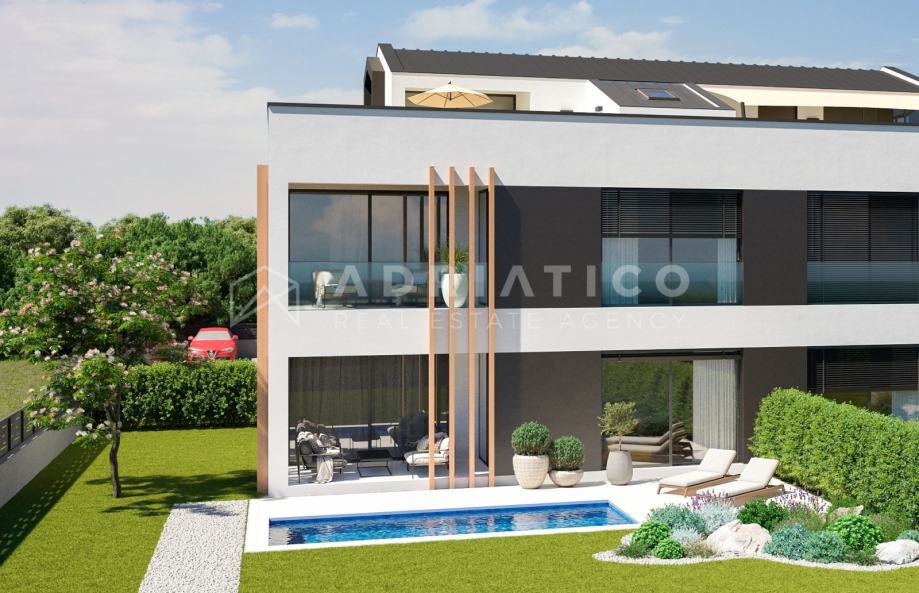 Rovinj, novogradnja, trosobni stan s vrtom i bazenom (prodaja)