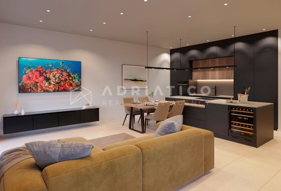 - terasa i vrt od 268m2 na kojem će se nalaziti grijani bazen sa slanom elektrolizom i Duraston (terrazzo) oblogom.