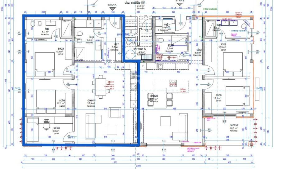 Stan se u svojih 91,30m2 neto stambene površine sastoji od: