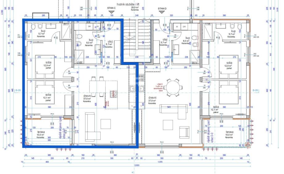Stan se u svojih 92,30m2 neto stambene površine sastoji od:
