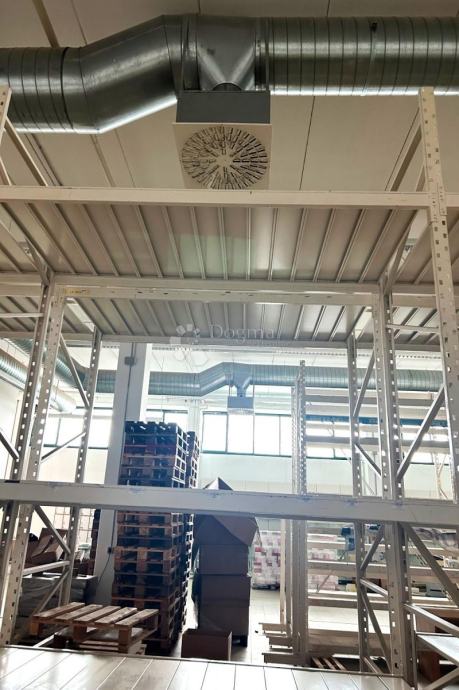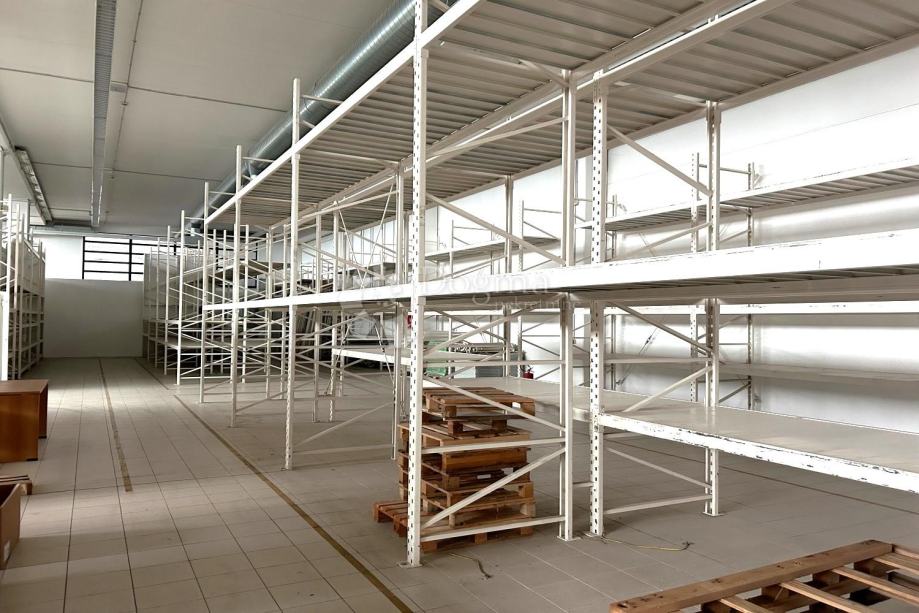 Skladište je veličine 700 m², visine 5,5 m, kompletno opremljeno paletnim regalima. Dobro održavan sistem grijanja i hlađenja te alarm s 24-satnim praćenjem. Zemljište oko skladišta je ograđeno ogradom visine 2m s video nadzorom.
