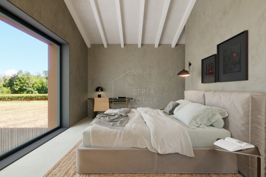 Vila dizajnirana modernim stilom koji poštuje istarsku tradiciju prodaje se namještena te je idealna nekretnina da li za novi život u perspektivnoj i mirnoj sredini ili za turistički najam i povrat investicije.