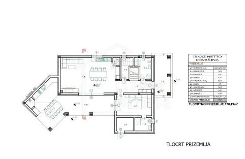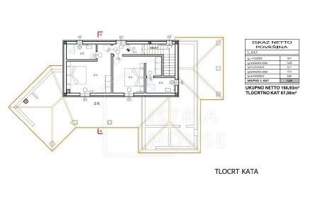 Ova vila se sastoji od prizemlja i prvog kata, ukupne netto površine od 166,93 m2. Ulaskom u kuću ulazimo u predsoblje gdje se sa desne strane nalazi kupaonica, stepenište za na prvi kat te spremište, a sa desne strane jedna spavaća soba sa vlastitom kupaonicom. Potom se dolazi do otvorene cjeline sa kuhinjom, blagovaonom i dnevnim boravkom koji imaju otvoreni pogled prema vanjskoj okućnici i bazenu. Sa vanjske strane prizemlja ulazi se u još jedno spremište planirano kao strojarnica za bazen i centralno grijanje. Na prvom katu se nalaze dvije spavaće sobe sa vlastitim kupaonicama.
