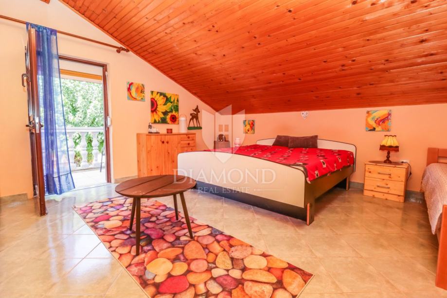U prizemlju kuće nalazimo dnevni boravak, kuhinju sa blagovaonicom, jednu spavaću sobu, kupaonicu te predivan i suncem obasjano predsoblje. Odlaskom na kat, dolazimo do još tri spavaće sobe i jedne kupaonice. Jedna od soba ima vlastitu garderobu sa umivaonikom te je uz malo adaptacije pretvara u vlastitu kupaonicu. Na katu se nalaze dvije terase koje imaju vlastito stepenište prema dvorištu.