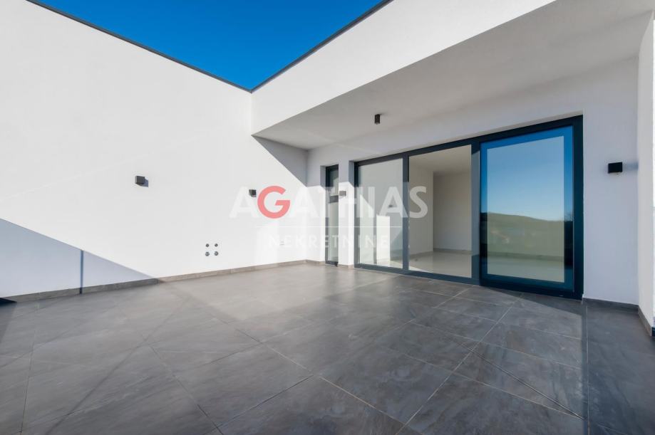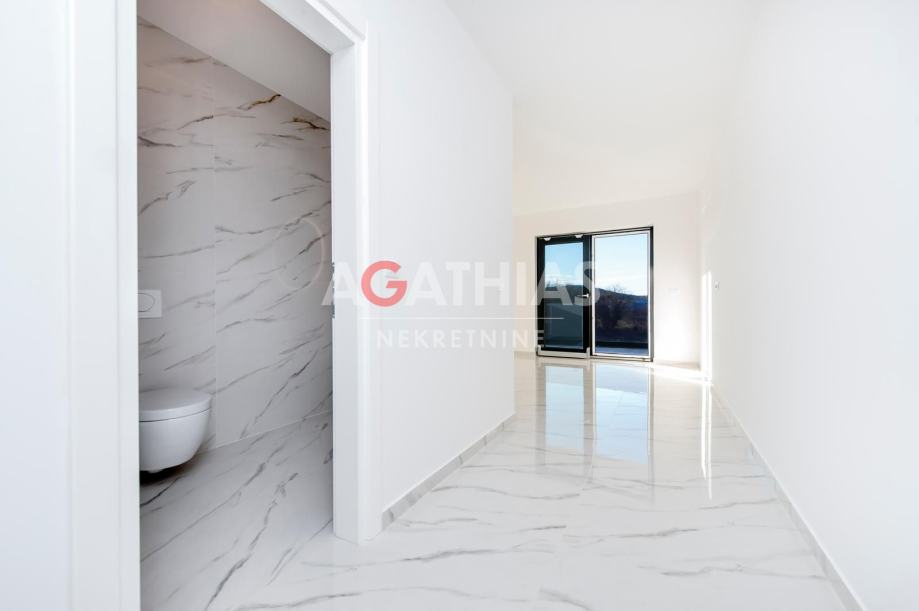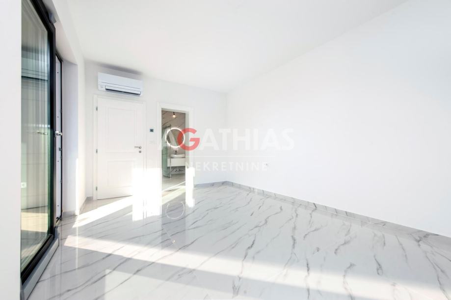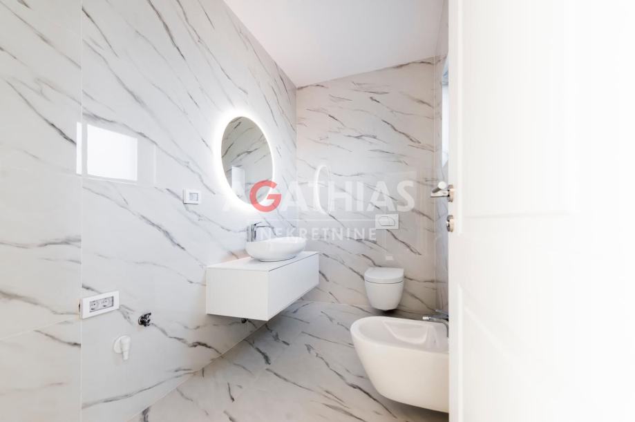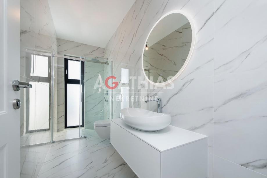 Nekretnina je građena visokokvalitetnim materijalima. Nosiva konstrukcija izrađena je od zidanih elemenata i armiranobetonskih međukatnih ploča, dok su unutarnji zidovi obloženi žbukom i obojani u svijetlim tonovima. Terase su opremljene modernim staklenim ogradama od kaljenog prozirnog stakla. Unutarnja stolarija izrađena je od MDF materijala s odličnom zvučnom izolacijom, a vanjska ALU-PVC stolarija osigurava trajnost i energetsku učinkovitost. Sustav grijanja i hlađenja uključuje dizalice topline s podnim grijanjem te multi-split sustave za klimatizaciju u svim prostorijama.