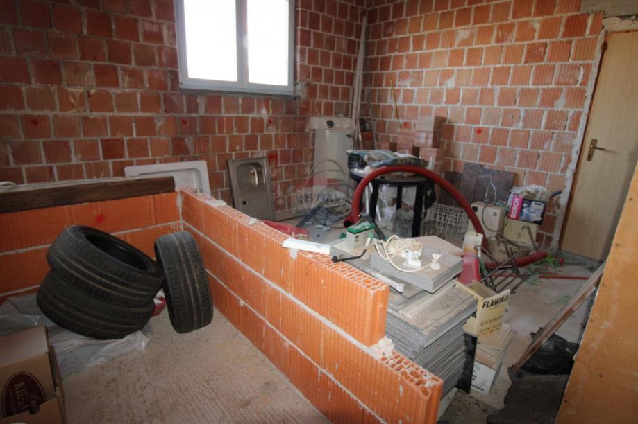 Obiteljska kuća se prostire na dvije etaže ukupne površine od 240 m2 - na prizemlju su dnevni boravak, spavaća soba, kupatilo i veliki prostor s ognjištem i izlazom na terasu, a na katu je, sa zasebnim ulazom, jedan stan s dvije spavaće sobe, kuhinjom , dnevnim boravkom i kupaonicom.