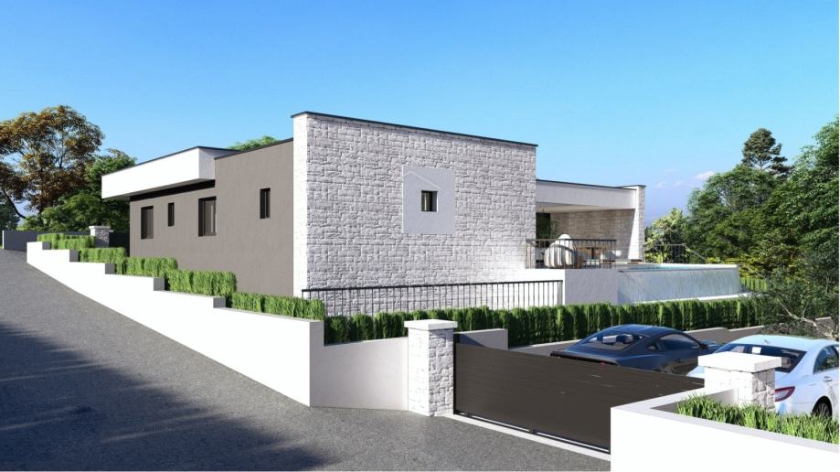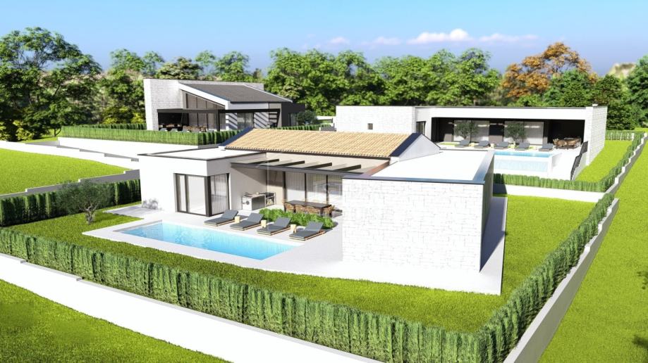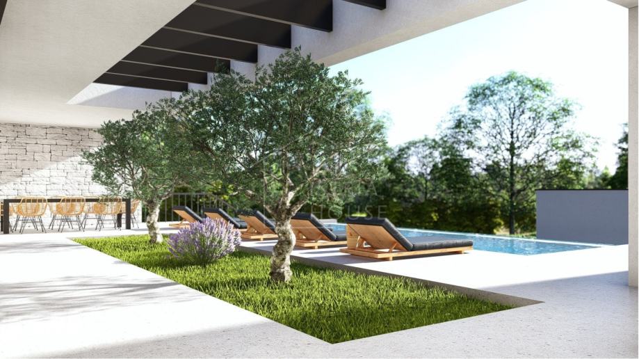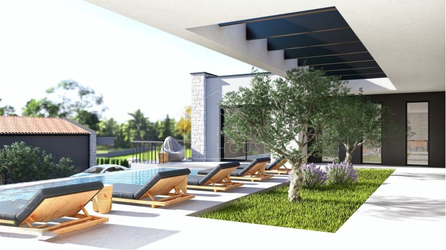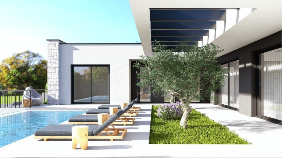 Prodaje se nova moderna vila u širokoj okolici Rovinja kod jednog tradicionalnog istarskog mjesta. Kuća je smještena na rubu izrazito mirnog naselja okružena prirodom i zelenilom. Kuća je savršen spoj modernih elemenata kao što su otvoreni prostor i velike staklene stijene te tradicionalnih elemenata poput kamenih zidova. Svi potrebni sadržaji se nalaze u blizni kuće, a Rovinj i more su udaljeni 25 km.