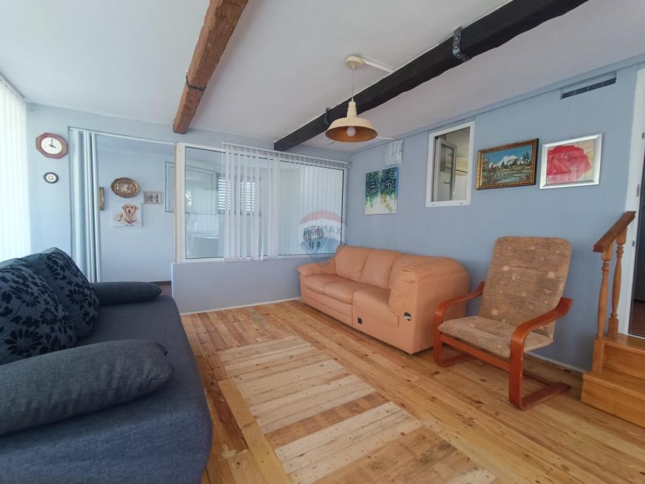 Sastoji se od velikog dnevnog boravka, dvije spavaće sobe, kuhinje, blagovaonice te kupaonice i jedne manje prostorije koja također može biti spavaća soba ili radni kutak. Na lijepoj i uređenoj okućnici smjestio se i veliki bazen 8x4 metara.