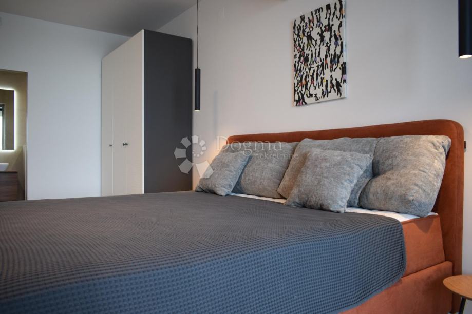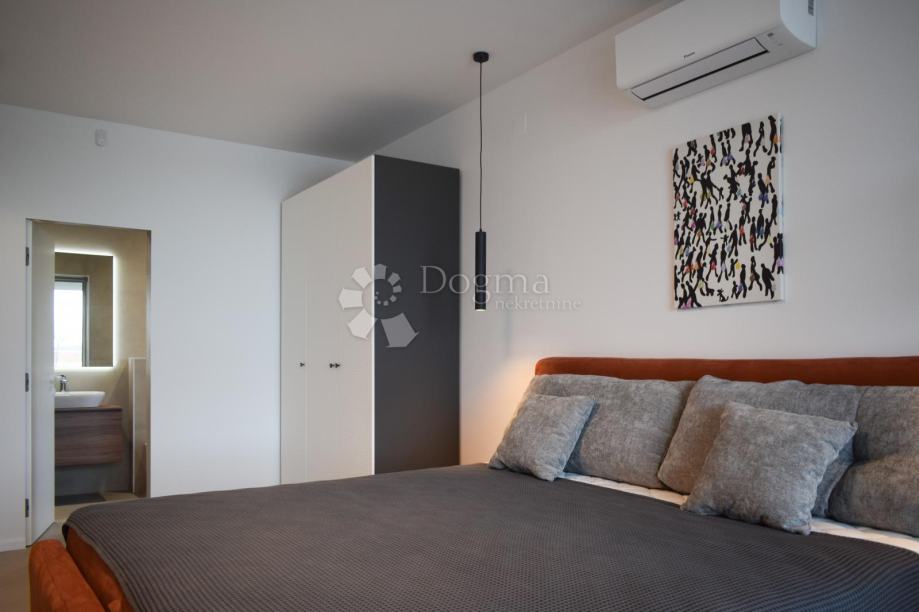 Na katu su smještene dvije elegantne spavaće sobe, svaka s vlastitom en-suite kupaonicom, klima uređajem i TV-om. Dodatni prostor od 42 m2 trenutačno je u funkciji teretane / igraonice, no može se prenamijeniti prema željama budućeg vlasnika.