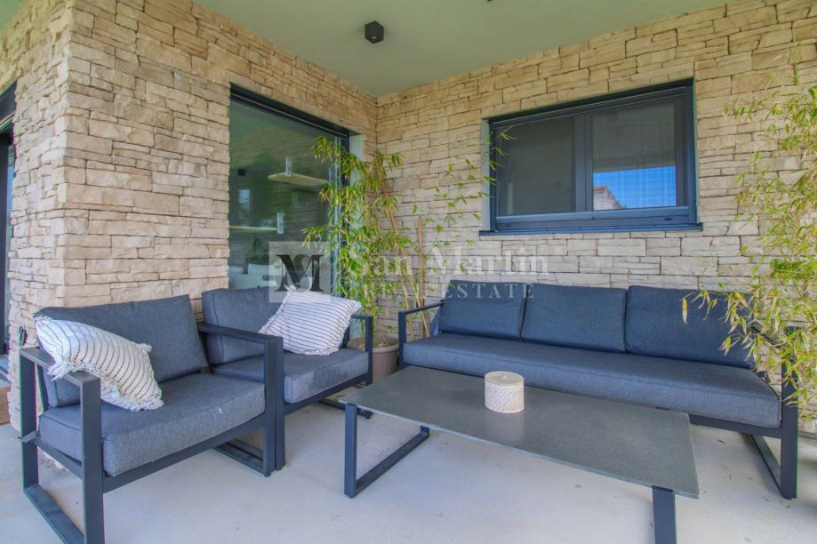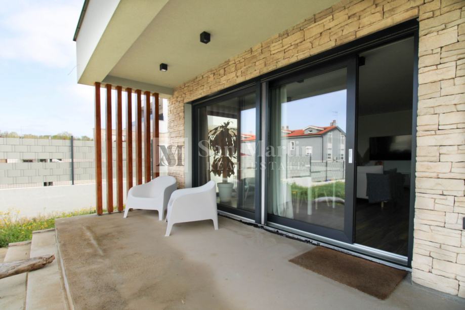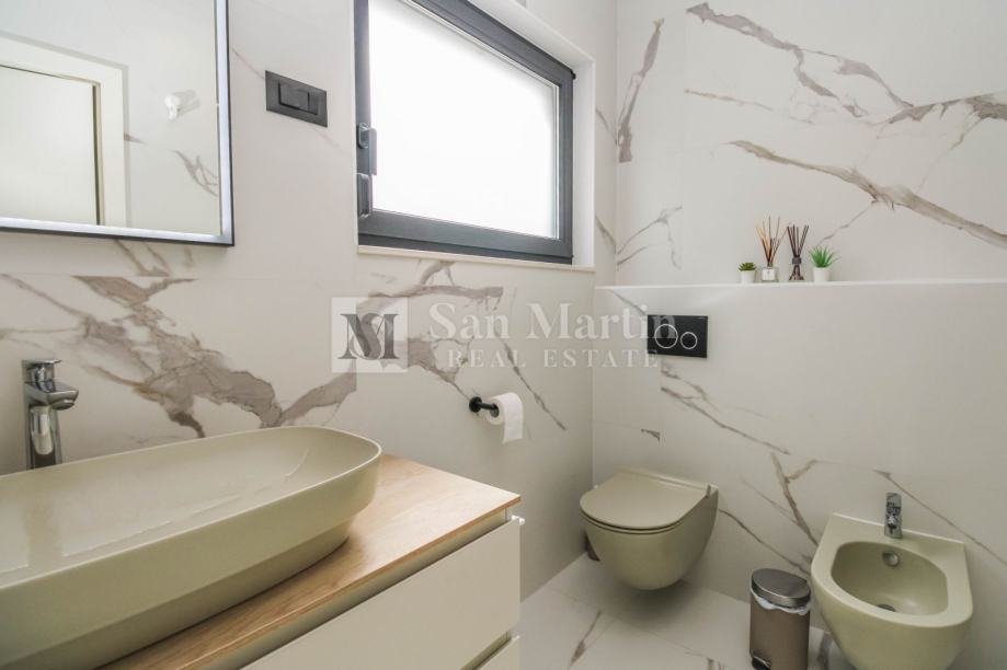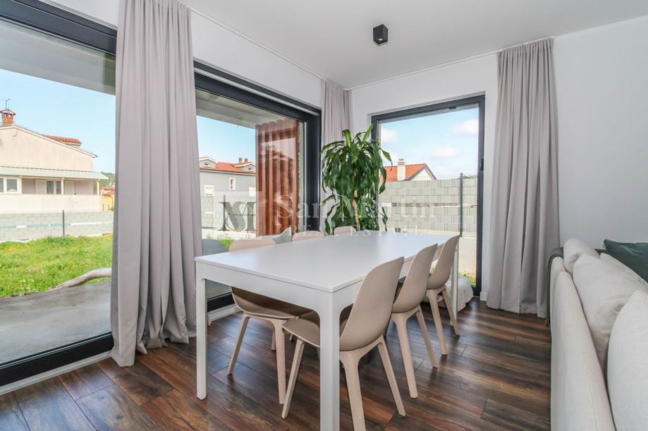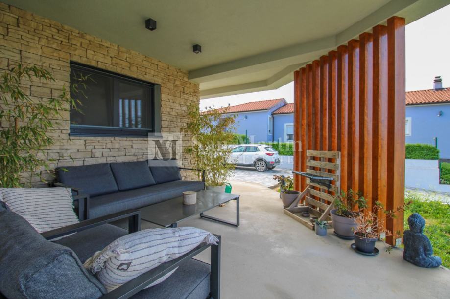 Okućnica je kompletno ograđena te ima 3-4 komforna parkirna mjesta. Također ukoliko netko želi bazen, ima prostora za isti sa dodatnim sadržajem kao što su sunčalište te vanjski tuš.