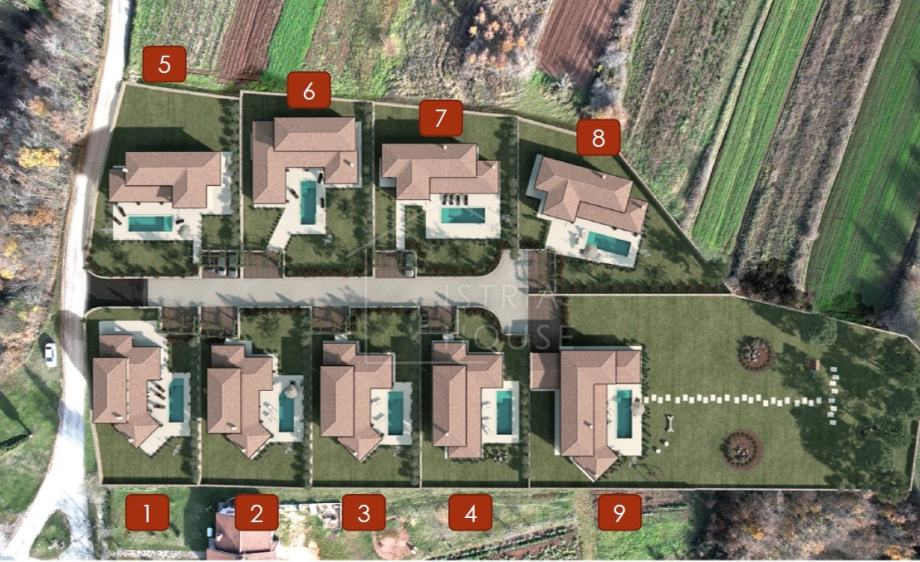 U okolici Žminja prodajemo vilu koja je jedna od 9 vila koje se grade i sačinjavati će jedan zatvoreni kompleks modernih građevina koje se grade u tipičnom istarskom stilu gdje se naglasak stavio na materijale sa kojima su se takve kuće gradile nekada davno. Kuća ima stambenu površinu od 293 m2 te je smještena na velikoj okućnici od 2783 m2.