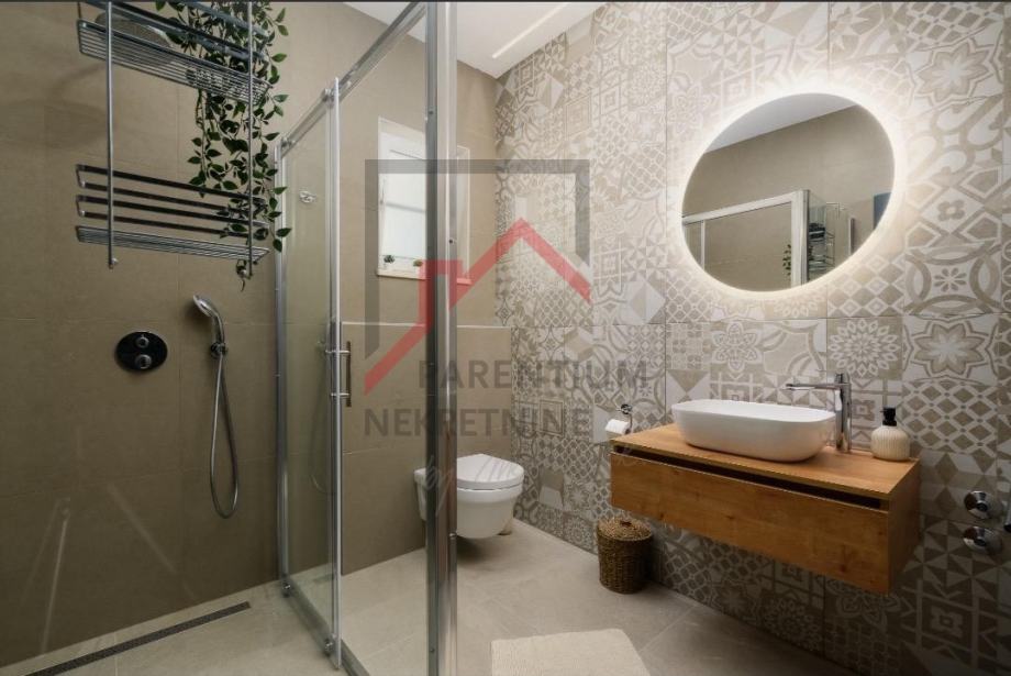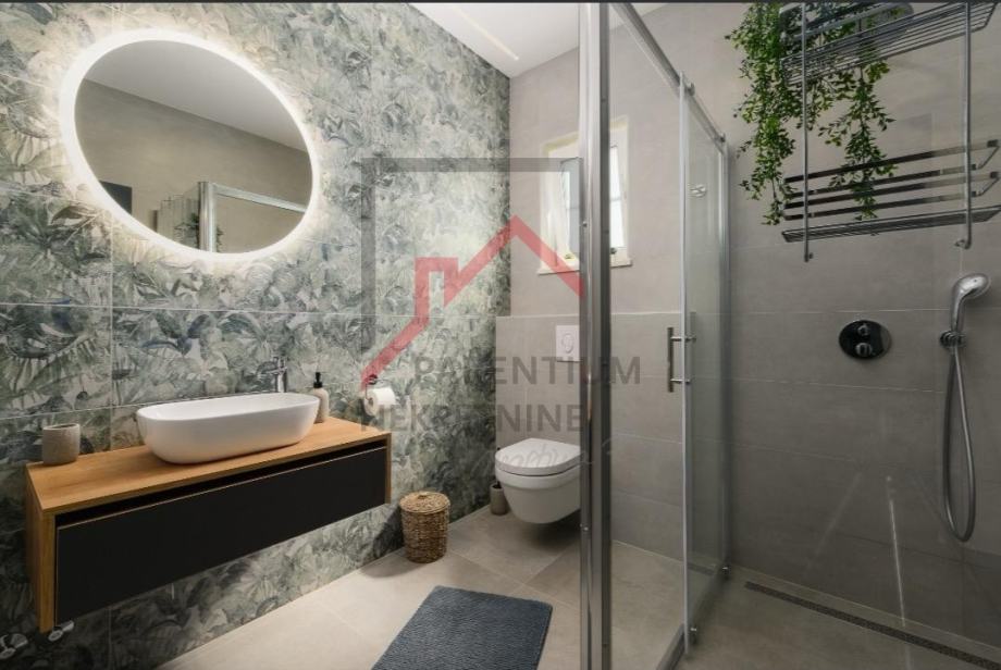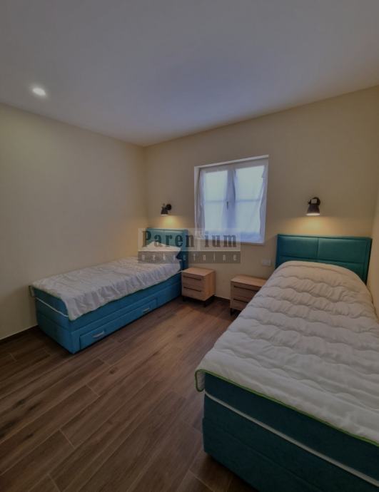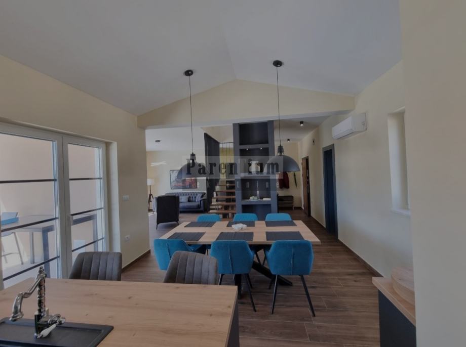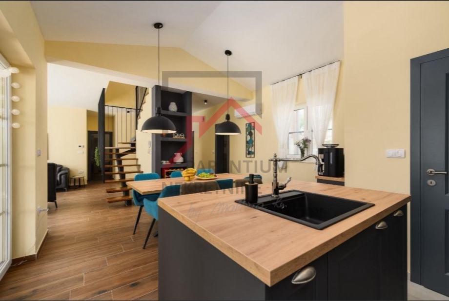 U prizemlju se nalazi visoko kvalitetna kuhinja izrađena po mjeri njemačkog proizvođača Moderano, blagovaona i dnevni boravak koji imaju direktan izlaz na prekrasno dvorište sa bazenom. Dvije spavaće sobe od koji svaka ima svoju vlastitu kupaonu. Jedna od soba u prizemlju ima pogled na bazen i dvorište. U prizemlju se također nalazi i gostinjski wc.