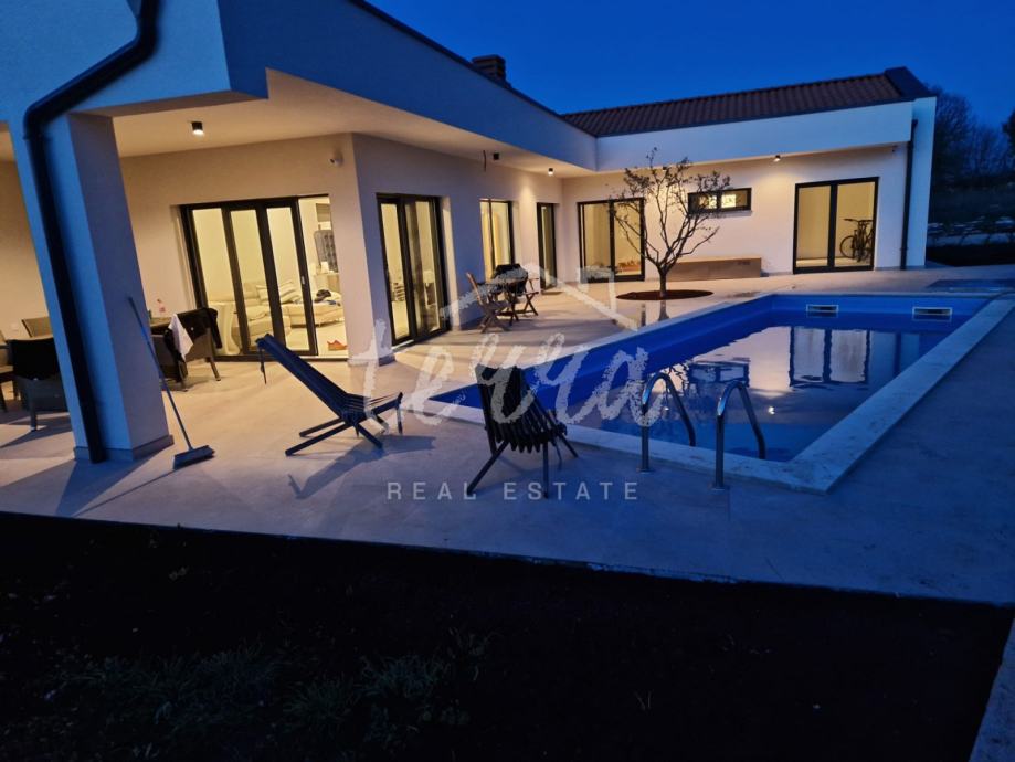 Iz dnevnog prostora izlazimo na veliku terasu i bazen sa sunčalištem, a za uživanje u jelima u toplim ljetnim danima tu je i ljetna kuhinja.