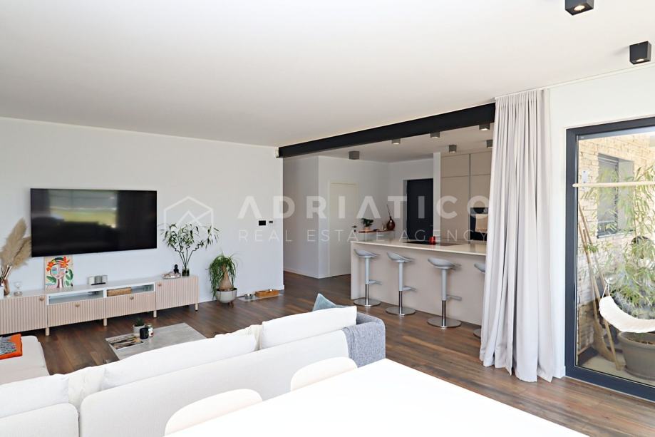 Kuća je izgrađena 2022. godine, a sastoji se od kuhinje, blagovaonice i prostranog dnevnog boravka u jednom s izlazom na terasu, toaleta, kupaonice, 3 spavaće sobe, hodnika i spremišta/kotlovnice.