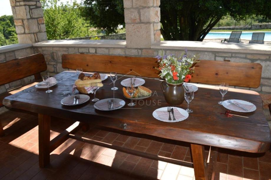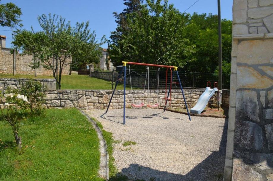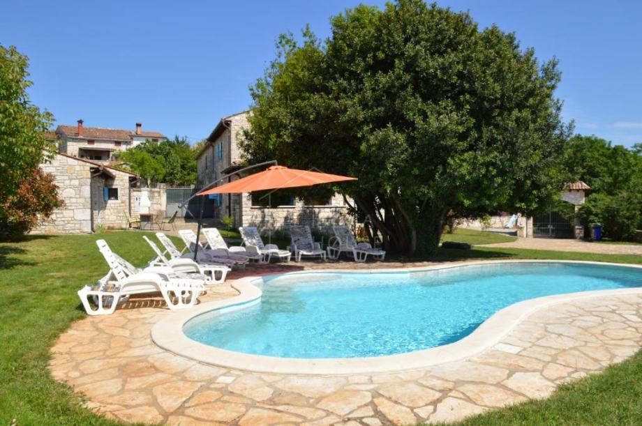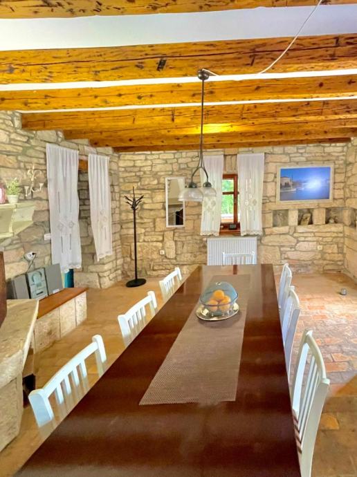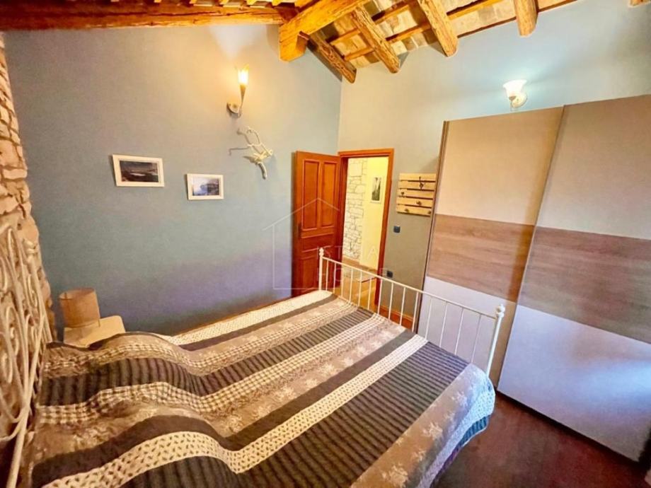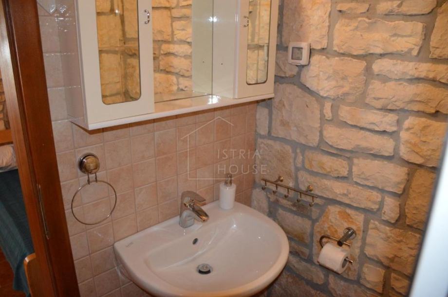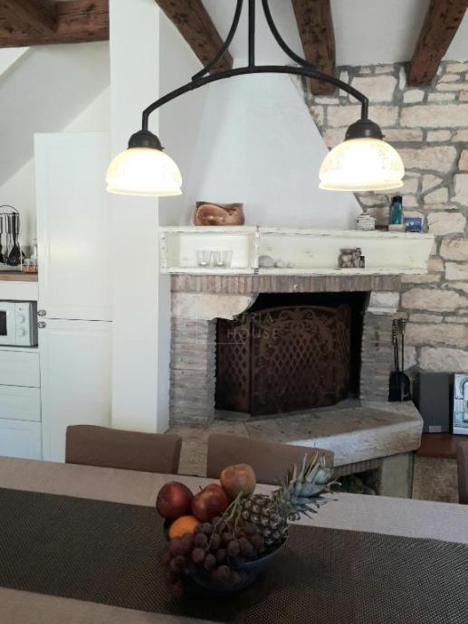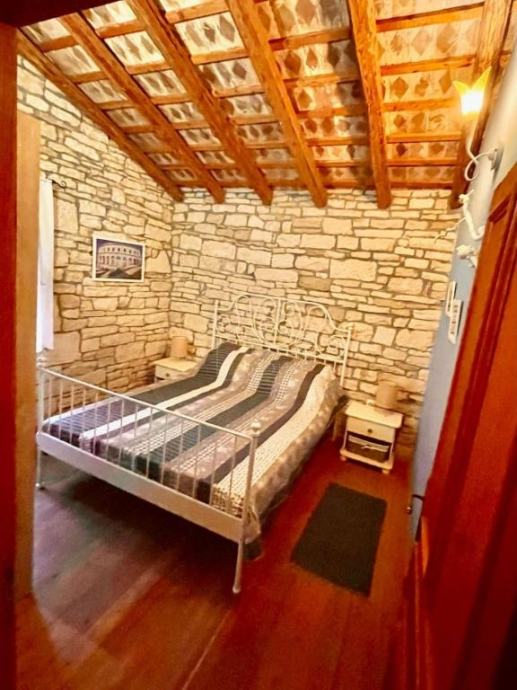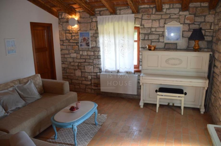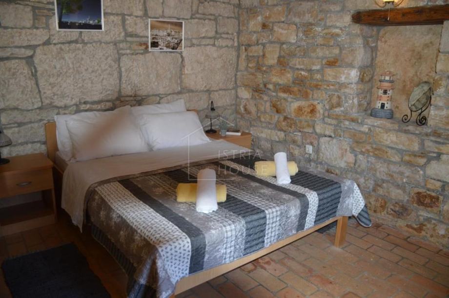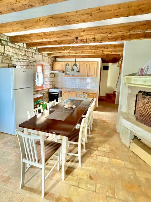 Unutrašnjost kuće spoj je tradicionalnih elemenata i modernog komfora. Tri udobne spavaće sobe pružaju dovoljno prostora za obitelj ili grupu prijatelja, dok dvije kupaonice osiguravaju dodatnu praktičnost. Ova kuća predstavlja savršen spoj istarskog naslijeđa i funkcionalnosti, s prostranim vrtom i bazenom u dvorištu, što je čini idealnim izborom za miran odmor ili uživanje u prirodi.