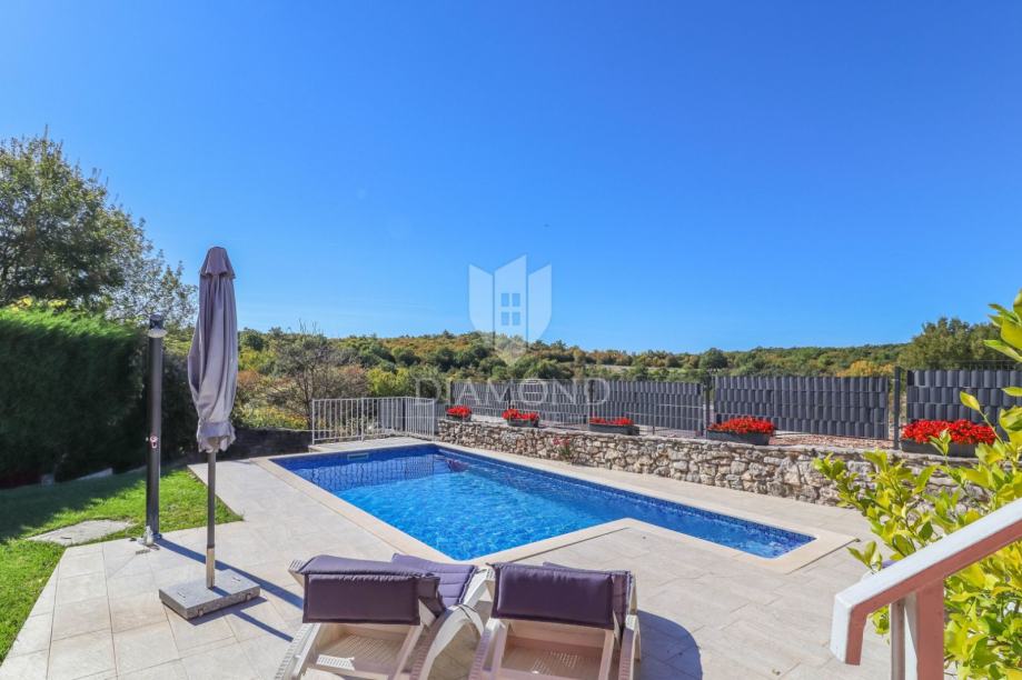 Na prostranom dvorištu od čak 413 m² nalazi se fantastičan bazen koji poziva na uživanje i osvježenje, a okružuje ga potpuna privatnost – prava rijetkost u ovom dijelu Istre. Uz bazen, tu je i kutak za druženje i roštilj, dvije vrtne kućice za spremanje svega što vam zatreba, te dovoljno mjesta za parkiranje više vozila.