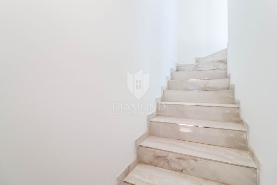 Na par kilometara od grada Rovinja koji očarava brojne posjetitelje svojom starogradskom jezgrom te mnogobrojnim turističkim sadržajima, nalazi se ova luksuzna kuća koja traži svog vlasnika. Smještena je u mirnoj ulici na rubu naselja, okružena obiteljskim kućama, dok su u blizini svi potrebni sadržaji poput trgovina, obrazovnih ustanova, ugostiteljska ponuda i slično.