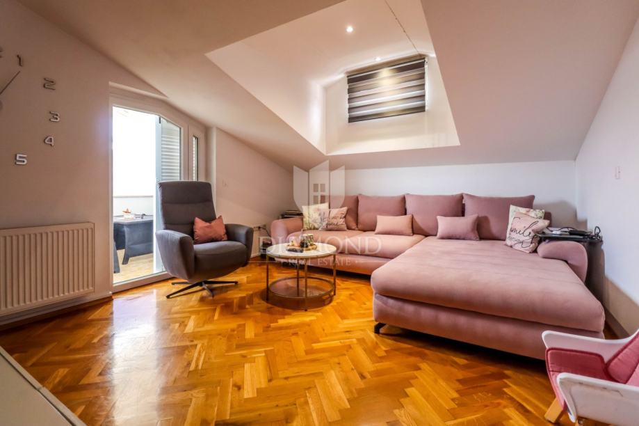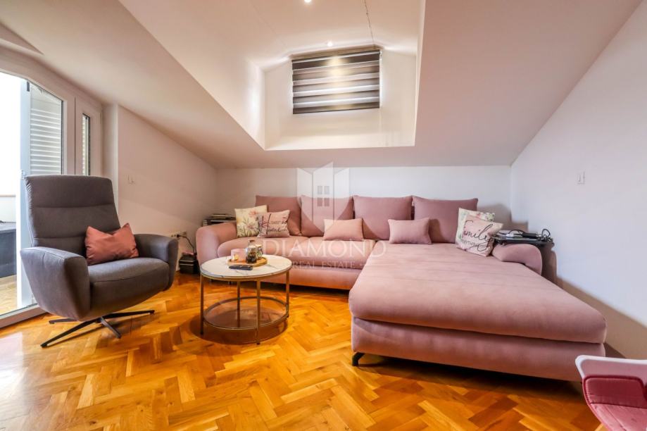 Stan se smjestio na drugom katu zgrade novije gradnje, a svojim rasporedom i kvadraturom od 82 m² nudi sve što je potrebno za udoban život. Prostori su promišljeno organizirani – već pri ulazu stvara se osjećaj doma, s hodnikom koji vodi prema odvojenoj kuhinji i blagovaonici, ugodnoj i prozračnoj prostoriji s izlazom na terasu. Dnevni boravak, kao zaseban prostor za opuštanje, također ima vlastiti izlaz na terasu, što prostoru daje dodatnu dinamiku i svjetlost.