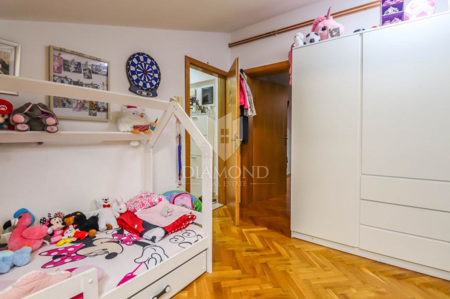 Dvije spavaće sobe smještene su u intimnijem dijelu stana, dok je kupaonica funkcionalno uređena i lako dostupna iz svih dijelova stana. Cjelokupan raspored stvara osjećaj prostornosti, ali i jasnoće u odjeljivanju dnevnog i privatnog dijela doma.