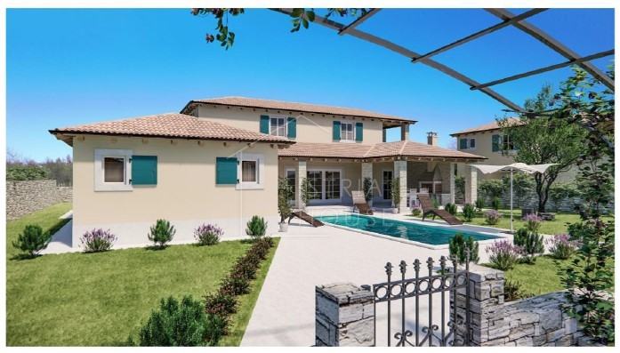 Karakteristike vile: podno grijanje planirano je na prizemlju i na katu, hlađenje klima uređaji (svaka soba + dnevni), krovište drveno izolacija kamena vuna,crijep istarska kupa , demit fasada debljine10 cm koja dolazi na pročelje u kombinaciji sa kamenom, natkriveni parking za tri automobila popločen tlakavcem, ulazni portun u naselje na elektro motor, daljinski upravljan, stolarija drvena unutarnja i vanjska, podovi keramika, stepenice kamen, rukohvati i ograde kovano željezo, uređen okoliš posađena trava i biljke sa navodnjavanjem, kuća je komplet uređena i završena sa vanjskom rasvjetom, prodaje se bez namještaja.