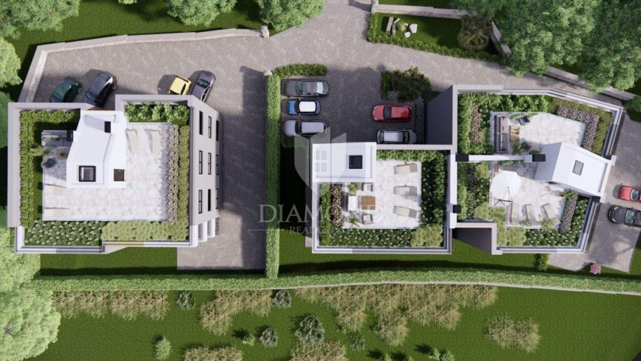 Nedaleko grada Rovinja, točnije u predgrađu istoga, nalazi se prekrasna zgrada u mirnom naselju. Moderna zgrada svoje je mjesto našla među obiteljskim kućama, što je izvrstan pokazatelj lokacije, dok se svi gradski sadržaji nalaze na svega par minuta vožnje. Planirani završetak gradnje je 03/2023.