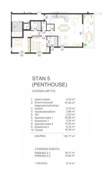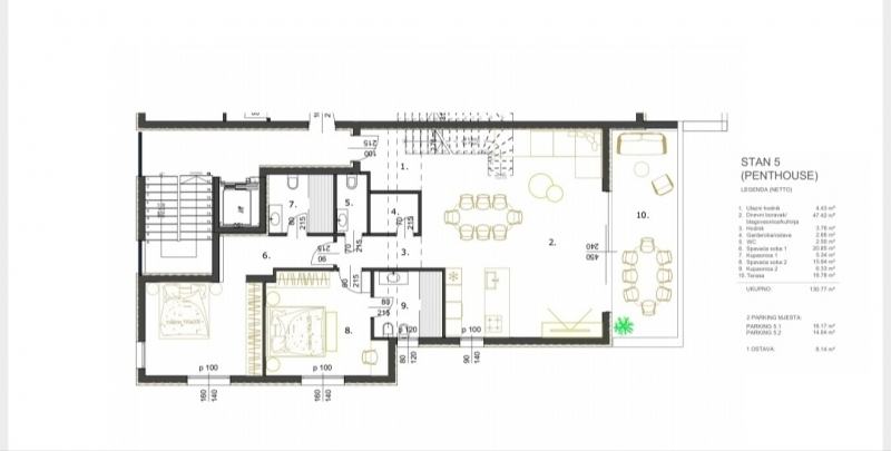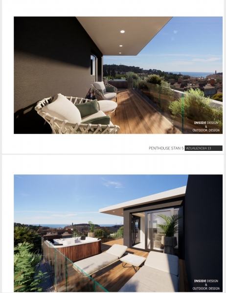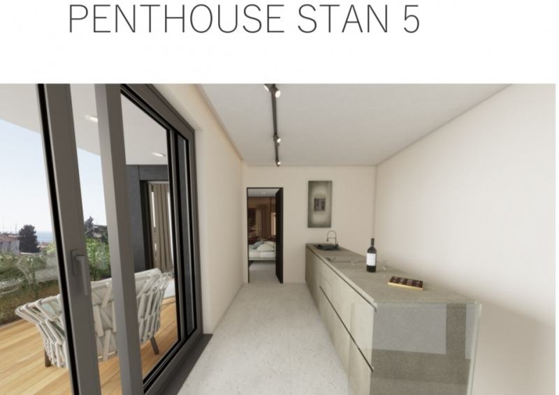 U predivnom turističkom biseru Rovinju a samo 300 metara do mora i centra Grada u ekskluzivnoj novogradnji s 6 stanova prodaje se ovaj predivan penthaus na drugom katu zgade i mansardi, sveukupno 199,19m2.