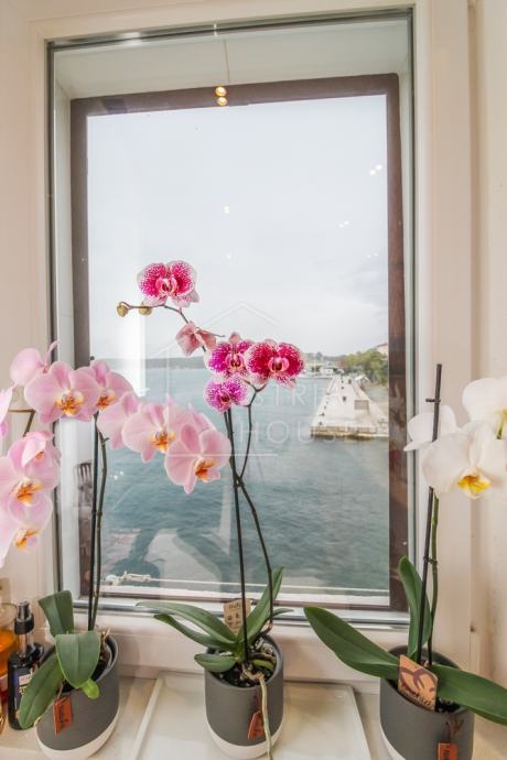 Na samom moru sa sjeverne strane na jednoj od najtraženijih lokacija u gradu nudi se stan za odmor i poslovni prostor od 53m2. Stan se sastoji od sobe, kupaone, kuhinje i dnevnog boravka koji sa svakog prozora imaju pogled na more. Stan je kompletno renovirana i odmah spremna za useljenje ili za turističku rentu tijekom cijele godine. Sa južne strane nalazi se zasebni poslovni prostor u jednoj od naj frekventnijih ulica staroga grada..