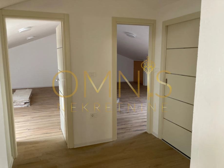 Stan se sastoji od prostranog hodnika, moderno uređene kuhinje, blagovaonice i dnevnog boravka otvorenog koncepta, dvije komforne spavaće sobe, praktičnog vešeraja te dvije elegantne kupaonice. Zahvaljujući velikoj kvadraturi i pametnom rasporedu, stan odiše prozračnošću i ugodom.