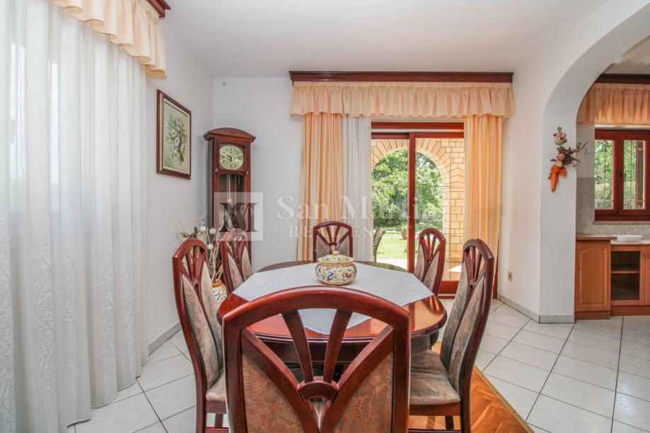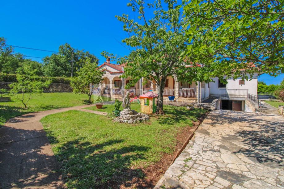 Oko kuće se prostire uređena okućnica koja odiše mediteranskim biljem, sa centralnom fontanom te uređenim puteljcima za ugodnu šetnju po vlastitom dvorištu. Dodatnu vrijednost podiže livada prije kuće koja je neiskorištena, a savršena je za mali maslinik ili slično.