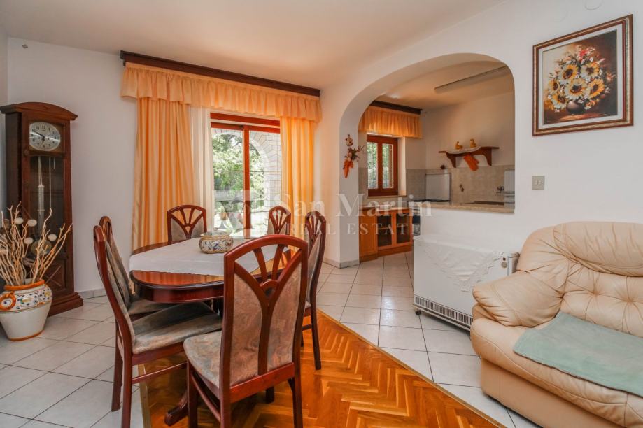 Kuća je smještena na zemljištu koje broji više od 3000 m2 , te njezina ukupna kvadratura iznosi približnih 283 m2. U toj kvadraturi smjestile su se dva stana od 95m2, te jedna dodatna jedinica koja zahtjeva renovaciju od 38m2 sa vlastitom terasom i prilazom, te garaža sa spremištem .
